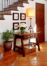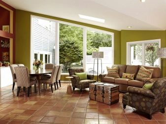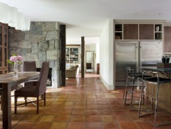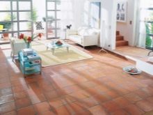 Интериорът, който използва теракотни плочки, дава усещане за релакс, сигурност. Поради факта, че този нюанс принадлежи към естествения, той е хармонично комбиниран с други естествени цветове. Докато с изкуствени, особено кисели нюанси, не изглежда.