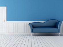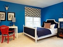 - Син. Строг цвят, който изисква добро осветление. Може да се използва за спални и дневни с прозорци към слънчевата страна. За да се предотврати потискането на интериора, тъмносиният цвят трябва да се разрежда със светли нюанси от същия диапазон. За средиземноморски селски стил или морска тема е подходяща комбинация от бяло и синьо, както и използването на тези цветове в раирани тапети..