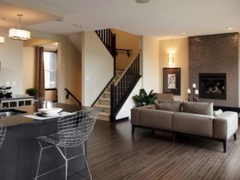 - За хола и залата в съвременния интериор комбинацията от тъмни и светли цветове, както и правилното осветление и осветление могат да направят чудеса. Същото важи и за кухните и баните..