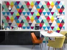 Решението може да бъде геометрични форми или абстракция на светли цветове върху тъмни тапети. Вертикалните ивици от същия спектър визуално ще увеличат височината на таваните и ще освежат интериора. Карираният модел е подходящ за английска селска кухня или малка детска стая..