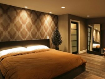 Тапетите в топли кафяви тонове с подсветка в спалнята ще създадат уют и ще ви поканят на релаксиращ престой..