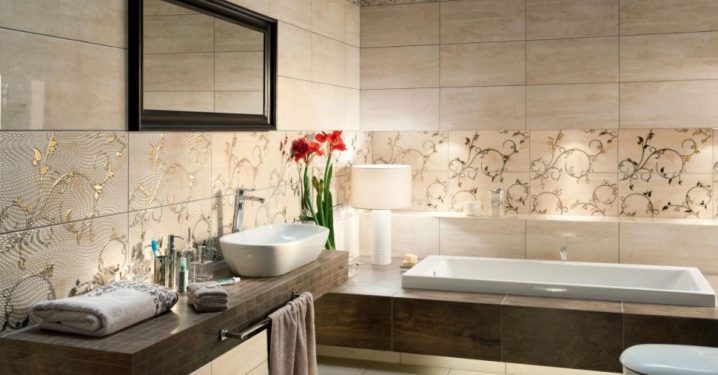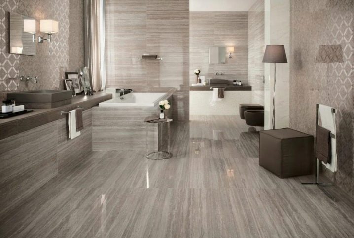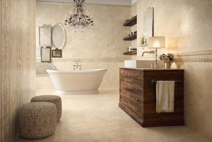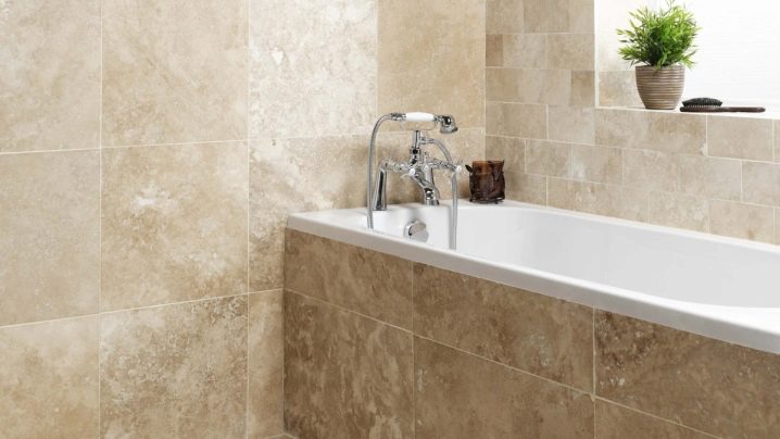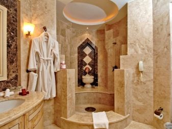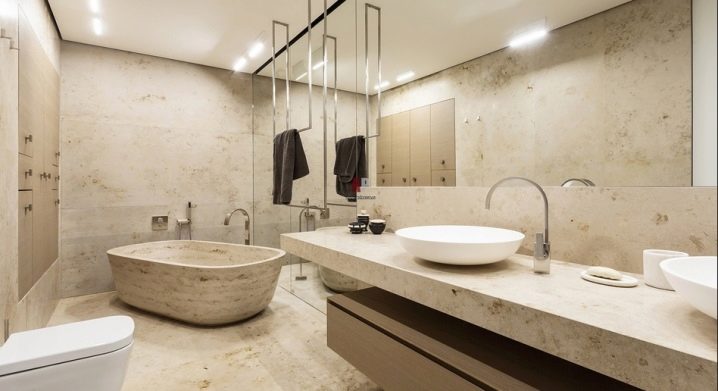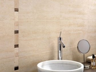 Ако изберете стенни плочки от керамичната колекция и украсите подовите плочки от травертин, това ще направи ремонта по -евтин и с удоволствие ще експлоатира естествените свойства на естествения камък..