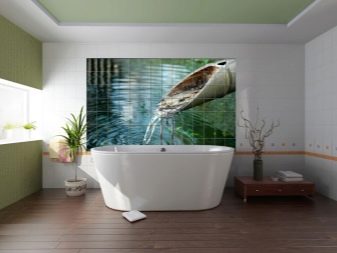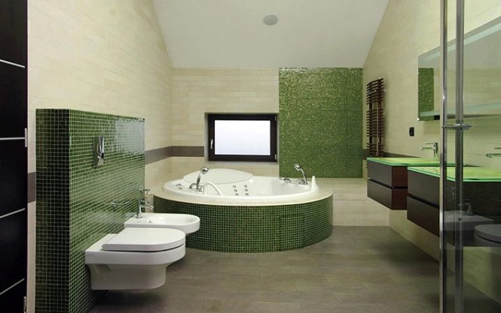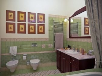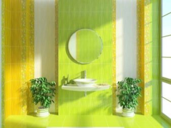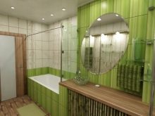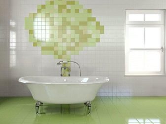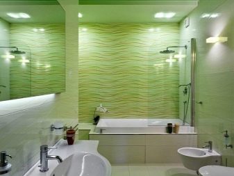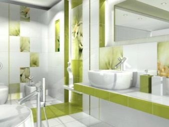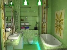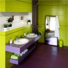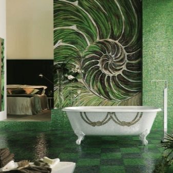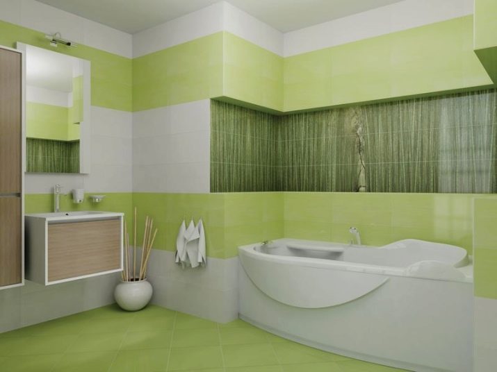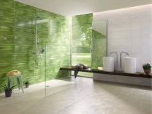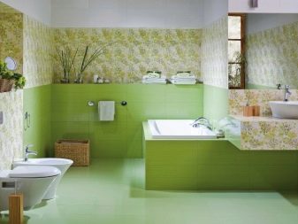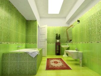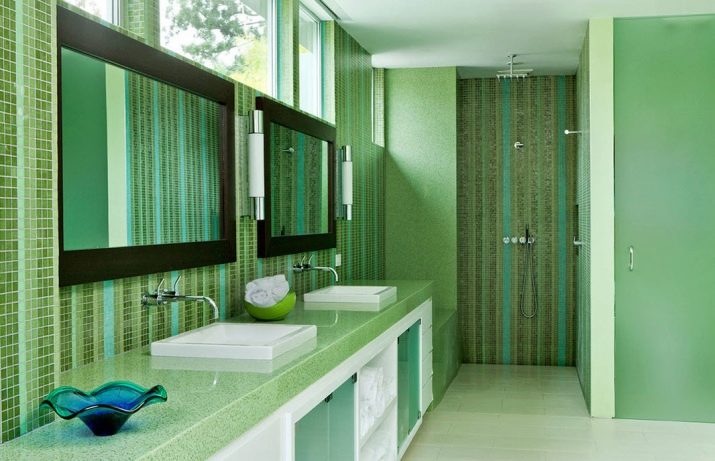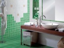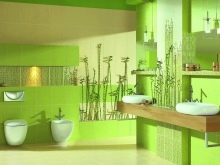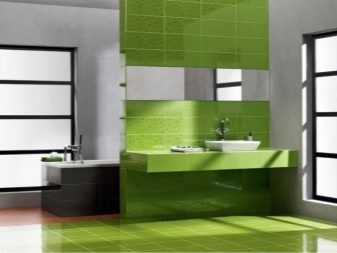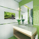 - с твърдо решение да се направи стаята изключително зелена, е наложително да се работи с палитрата, а също така ще бъде много оригинално да се използват плочки с различни повърхности, например, за да се съчетаят лъскавите плочки с мат и т.н., в противен случай стаята ще изглежда като скучна стая.
