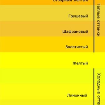 Жълтото е относително понятие, има много производни, както и разнообразието от нюанси на стенни или подови плочки в тази палитра. Според Panton има 136 цветови опции. Ярък, умерен до среден, справедлив: