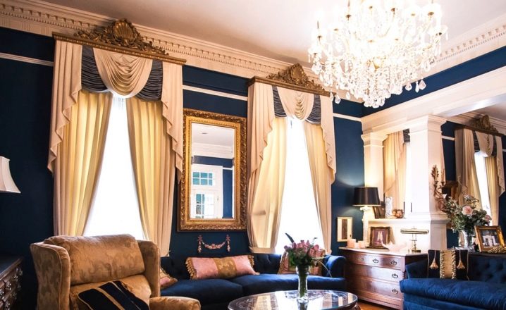 - Горната част на завесите е рамкирана с ламбрекени, бродерия или други ярки важни елементи;