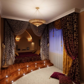 Тези ламели често се монтират като ниша над леглото. Това решение е по -подходящо за спални в класически стил, но изглежда много впечатляващо..