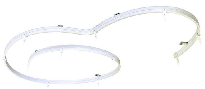 Гъвкав карниз за права завеса с права форма е универсален. Системите със заоблени ъгли имат много полезно свойство както от естетическа, така и от практическа гледна точка. Когато се използва в спалнята, когато нощните завеси се изтеглят, по -малко светлина и студен въздух влизат в стаята, създавайки усещане за комфорт и сигурност.