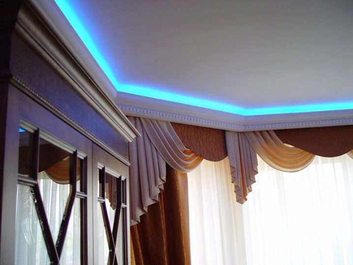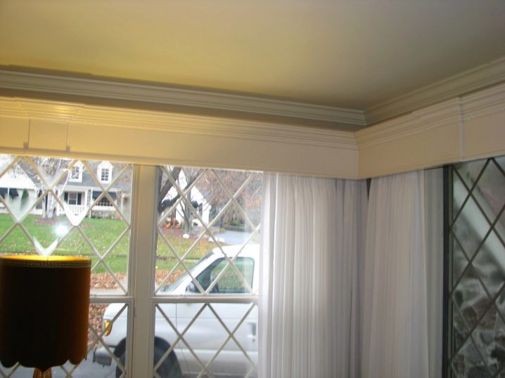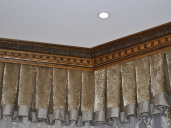 Интериорните дизайнери препоръчват използването на таванни профили в малки пространства с ниски тавани. Когато използвате този корниз за отвори за прозорци, можете визуално да разтегнете стаята.