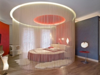 За да разделят пространството на отделни зони като част от работата по модерно интериорно решение, специалистите често използват такива структури. Например, когато се разграничават зони в студио апартамент от този тип, се монтират корнизи за закрепване на завеси от тип балдахин или различни екрани към тях, които от своя страна изпълняват функцията за зониране на стаята.