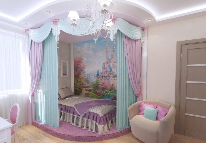 Този вид продукт е намерил своето място в помещенията на детските стаи: поставяне на сенник над люлката, разпределяне на зона за игри, занимания и зони за отдих.