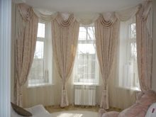 Като подчертаете еркера със специален корниз, ще се окаже, че създава уютна атмосфера в стаята. Изборът в полза на плътни тъкани за завеси ще предпази от течения и леко ще изглади липсата на отопление в тази част на къщата..