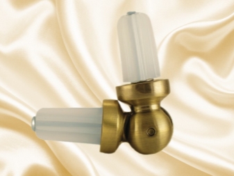 - Адаптер за еркери служи за свързване на тръби в ъглите, като е позволено да се регулира ъгълът на самия адаптер и да се фиксира с винт.