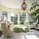 Еркерният прозорец се характеризира с необичайна панорамна форма, така че ще трябва да изберете корниз, като вземете предвид тази функция.. Корнизите за еркери за завеси могат или да повтарят формата, да се огъват плавно по цялата дължина на нишата, или да се състоят от няколко прави линии. Първият вариант е за предпочитане в случаите, когато няма нужда да привличате внимание към завесите и необичайната форма на прозореца, докато вторият ви позволява да направите еркера акцент на композицията, подчертавайки го.