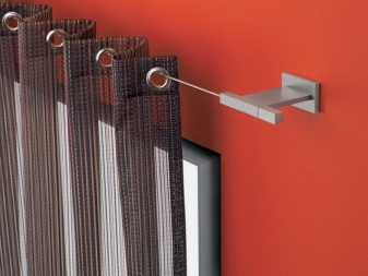 Струнните дизайни изглеждат много модерни и минималистични. Те не заемат много място и са почти невидими, но присъствието им добавя необходимото шокиращо в стаята. Дизайнът на корниз от корда е изключително прост и се състои от две скоби, оборудвани със специални устройства за опъване на самата струна. Това е метален кабел, който може да издържи голямо тегло..