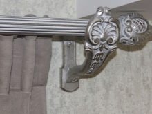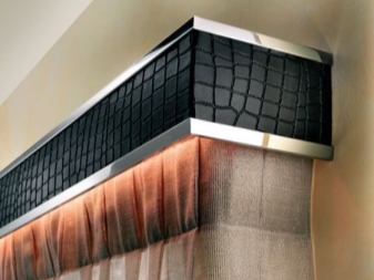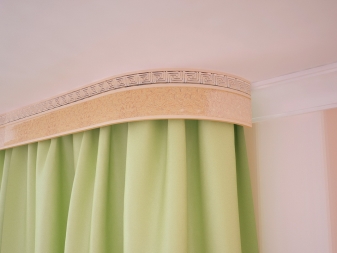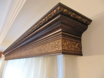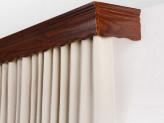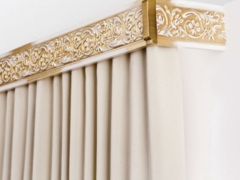 Багетата се допълва от издълбана лента. Дъската не само покрива целия “пълнеж”, който е отговорен за способността да премества завесите, но също така действа като декоративен елемент. Сравнително ниската цена на корниз за багети ви позволява да избирате различни видове покрития: от пластмасова дървена облицовка до естествена кожа. Често под бара има място за осветяване, което придава на завесите особен чар..