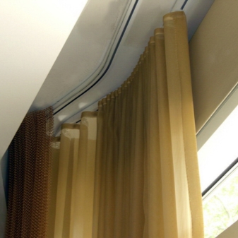 Изборът на кръгъл корниз налага определени задължения: закрепващите елементи на завесите, както и различният декор на завесите, трябва да бъдат изпълнени в един и същ дизайн с върховете и самия прът. Например, когато поръчвате завеси с капси, не само самите капси, но и куките за пердета трябва да бъдат направени в една и съща цветова схема с корниз и да се използват същите материали. Корнизът може да бъде прав или ъглов кръг. Ъгълът се използва за окачване на завеси в банята и обикновено не участва в декора на жилищни помещения..
