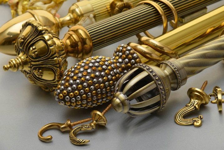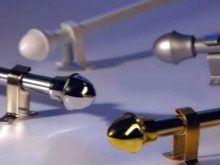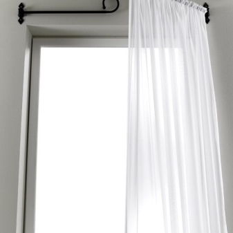В случай на ковани опции, декорът, напротив, е добре дошъл. Най -новата тенденция е стилизирането на корниза под клона на растение. Може да е просто гол клон, а може и с листа. Малките двойно ковани мини стрехи имат подобен флорален дизайн. Цветовете както за малки, така и за големи модели трябва да избират естествени метали: почернено сребро или злато, отлежала мед и бронз, месинг. Черното е актуално и тук, особено при избора на мини пердета за прозорци на тавана..