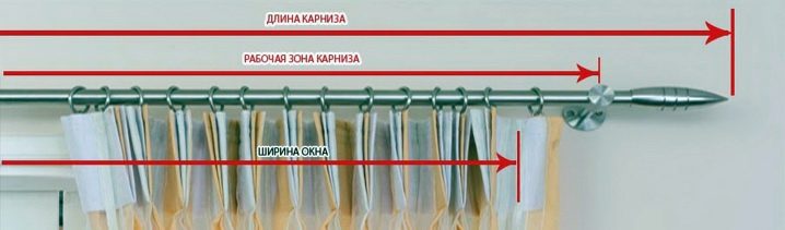 Дължината на мини корнизите зависи от ширината на крилото на прозореца: корнизът трябва да е малко по -тесен от крилото. Същото важи и за въртящите се и римските щори. Диаметърът на мини корнизите е приблизително 1 сантиметър. Диаметърът на железните пръти варира от 10 до 40 мм, в зависимост от предназначението на тръбата. Единичните модели обикновено са с диаметър 25 мм. В двуреден, щангата за завеси е 28 мм, а за тюл – от 10 до 16 мм. Дължината обикновено варира от 160 до 360 см, но можете да си купите еднокомпонентен прът с диаметър 28-50 мм и дължина 6 м.
