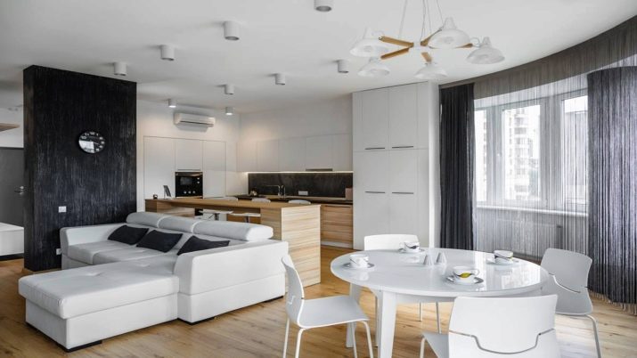 Съвременните дизайнерски идеи за студио апартамент се основават на основния принцип на дизайн на малки комбинирани стаи. Този принцип се крие в компетентното зониране на пространството. Много е важно, въпреки липсата на стени, кухнята, мястото за почивка и работната зона да бъдат разграничени помежду си..