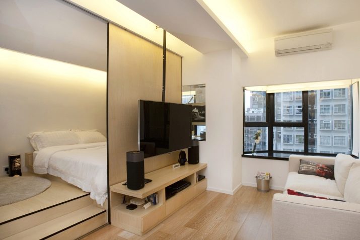За собствениците на малък апартамент има проблем с компактното и удобно оформление. Дори ако един човек живее в стая, той натрупва много неща, които трябва да се съхраняват някъде. Следователно, за функционалността на дома, ще трябва да разделите апартамента на няколко зони: място за спане, работна зона и хранене..
