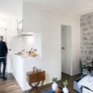 - голям брой цветни елементи в интериора на студиото е нежелан. Малките кухни изглеждат страхотно в минималистичен стил. Не претоварвайте стаята с декоративни елементи: вази, магнити или фигурки. Най -добрият вариант би бил плоските мебели с лъскава повърхност;