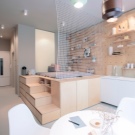 - всеки сантиметър от апартамента трябва да се използва колкото е възможно повече. Помислете внимателно по въпроса за съхранението. Изберете високи кухненски мебели над масата, можете да закачите оригинален рафт. Ако бар броячът участва в зонирането на пространството, трябва да дадете предпочитание на опцията с голям брой чекмеджета и рафтове;