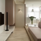 - в дизайна на студио с площ от 17 квадратни метра трябва да се поддържа една единствена цветова палитра и стил. Направете плавен преход от кухнята към хола. Не е необходимо да използвате само един цвят в интериора, основната задача е съвместимостта на нюансите и правилното им разпределение по цялата площ;