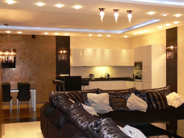 Когато планирате осветителна система за студио апартамент с малка площ, не трябва да я претоварвате с прекомерен брой лампи. Това допълнително ще подчертае тесното пространство. Източниците на светлина трябва да създават чувство на увереност, че всичко е на мястото си.