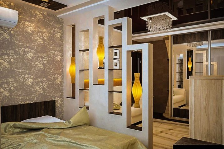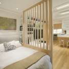 Интериорните прегради са неразделна част от интериора в студио апартамент. Такъв апартамент е стая, в която преградите първоначално напълно отсъстват, стаята му е ограничена само от четири стени. С помощта на прегради в студио апартамент можете да създадете и отделите кухня, трапезария, хол, както и място за работа, зона за спане или детска стая, в зависимост от желанията и вкуса на обитателите на студио апартамент. Всички тези функционални зони на едностаен апартамент като цяло представляват едно общо пространство, което трябва да бъде правилно зонирано и декорирано, както и правилно поставени прегради и мебели, за да се възползват максимално от пространството на стаята, но в същото време не го претоварвайте. Без прегради е невъзможно да се създадат различни зони в студио апартамент, те са много подходящи за собствениците на апартаменти с такова оформление, дизайнерите представят много стилни и интересни решения за зониране.