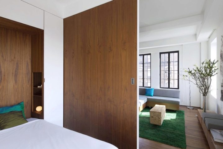Плъзгащите се прегради са най -доброто решение за зониране на студио апартамент. Този елемент от интериора може да осигури добра звукоизолация на различни зони една от друга. Такава преграда е идеална за разделяне на детска зона или спалня. Тя ще помогне в точното време да скрие необходимото от любопитни очи. Освен това, ако имате бебе у дома, можете да затворите такива прегради, за да му осигурите спокоен сън, без да го събуждате с външни звуци..