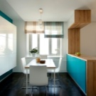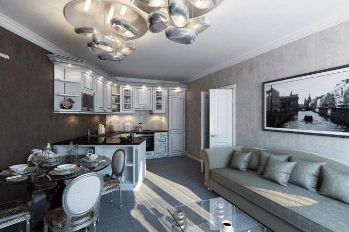 Най-популярният вариант за декориране на кухня в такова студио е създаването на кухня-хол. Тази опция е идеална за средно студио с площ от 44-45 кв. м и повече, защото в такъв апартамент можете да направите по -просторна всекидневна за уютни семейни събирания или за среща с гости. В този случай кухнята-холът ще включва поне две зони: зона за гости (зала) и кухненска част, в която ще готвите. Друг вариант са цели три зони: работната зона на кухнята, трапезарията и зоната за гости..