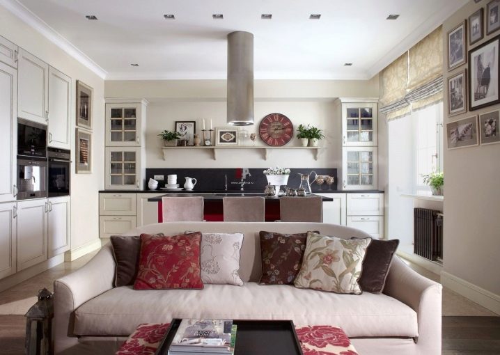 Със съвместния дизайн на кухнята и хола се оказва, че една функционална зона логически продължава от друга зона, тоест кухнята плавно преминава в хола. В същото време такава кухня-хол е проектирана в същия стил и в същата цветова палитра. Можете да инсталирате необходимата електроника в такава кухня, като телевизор, аудио устройства и други. Вградените уреди са най-подходящи за кухня-хол, тъй като заемат по-малко място и в същото време изглеждат много модерни и модерни. Тази техника дори помага да се направи стаята по -удобна..