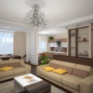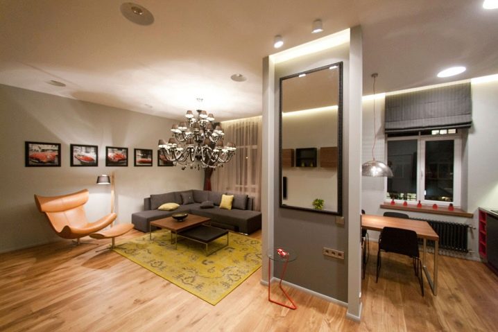 Има огромен брой опции за зониране. За да направите това, можете самостоятелно да инсталирате прегради, мебели, шкафове, рафтове с домакински уреди, бар плотове. Зонирането с осветление и цвят сега е много популярно, както и зонирането чрез създаване на таван и под на две нива.