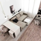 Когато планирате интериора на голямо студио, опитайте се да изберете светли мебели. В допълнение, тя не трябва да бъде масивна, за да не натоварва място. По -добре е да се даде предпочитание на по -компактни и функционални мебели. Идеални са трансформаторните модели.