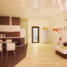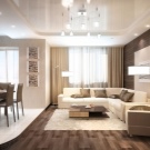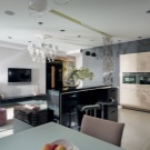 Много интересно решение би било оформление, използващо мебели, които съставляват един единствен ансамбъл. Картината изглежда страхотно, когато всяка мебел плавно се влива в друга. Изглежда много стилно и хармонично. В същото време е важно геометрично правилно да подредите мебели в голям студиен апартамент..