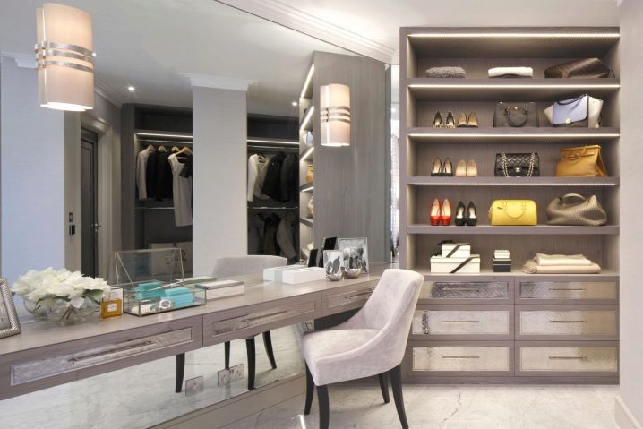 Не се страхувайте да изхвърлите обемисти шкафове. Много по -добре би било да се организира съблекалня, вместо преграда, в която ще има система от рафтове, където можете да поставите както любимите си книги, така и всякакви други домакински прибори. Можете да изберете всеки цвят, но е по -добре той да контрастира със стените.