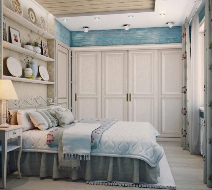 Леглото с гръб от ковано желязо със сигурност трябва да е компактно – няма нужда да избирате груби линии, метални елементи и така да противоречите на ефирната среда, а дебелите греди само ще увеличат контраста, от който никой не се нуждае. Същото се отнася и за дизайна на рафтовете – декорът се стреми към лекота, но не и обратно..