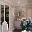 За да увеличите визуално обема на стаята, използвайте повече бели тонове. Ако искате флорален декор на тапета – просто изберете модел с деликатни люлякови и розови нюанси, или просто боядисайте стените в аква, той перфектно ще хармонира със светли мебели.