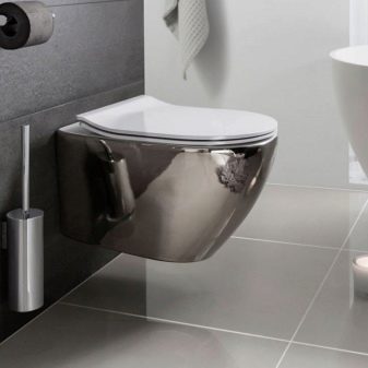 - Материал за производство. Най -често се използва порцелан – най -естетическият, запазващ цвета си за дълго време. В високотехнологичния интериор ще бъдат подходящи модели от неръждаема стомана. Можете да спестите пари, като изберете тоалетна с фаянсова рамка.
