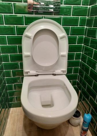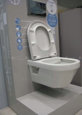 Съвременното решение е висяща тоалетна без рамки, тя не се монтира на пода, а на специален монтаж, вграден в стената. Поради факта, че основата е здрава стоманена рамка – инсталация, която осигурява изпълнението на носещи функции, монтажът е възможен почти навсякъде в банята. Именно върху него лежи висящото казанче, тръбопроводната система и самата водопроводна инсталация. Външно висящите тоалетни чинии изглеждат по -компактни, сякаш плуват над пода. Основното удобство се крие в избора на височина на засаждане – можете да фиксирате купата на всяко желано ниво.