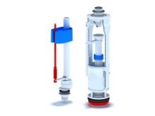 - Бутални клапани също губят своята актуалност, защото вдигат твърде много шум, когато водата се събира в тоалетното казанче. Лостът се издига вертикално, буталото с уплътнение регулира потока на течността.