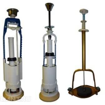 Натискащите клапани се използват за освобождаване на вода с натискане на бутон. Тези клапани са разделени на всмукателни и изпускателни клапани. Входящият вентил се нарича още „пълнител“, „пълнител“, защото отговаря за командите за подаване на вода и спиране на комплекта от промивния резервоар. Изходът е необходим за регулиране на приема на вода в казанчето за промиване.