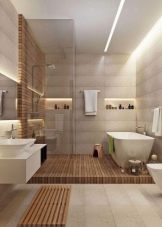 - Нивото на влага в помещението е по -високо в сравнение с други части на къщата. Ето защо си струва да изберете подходящия материал, подходящ като интериорна декорация..