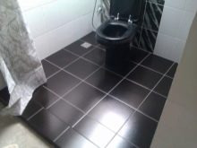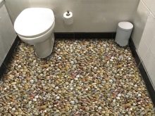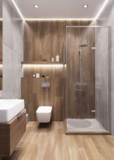 Нежелателно е да използвате дървени подови настилки в тоалетната, тъй като тя бързо ще загуби външния си вид поради проникване на влага.