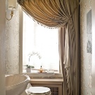 - Класически. Като облицовки се използват плочки, мрамор или естествено дърво. Стаята е декорирана в светли нюанси: бяло, светло кафяво, златно.