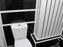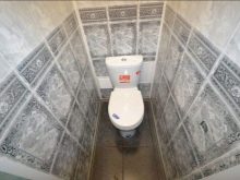 Бюджетна опция за декориране на тоалетна. Панелите са изработени от пластмаса. Материални предимства: