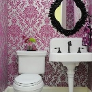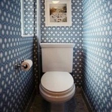 Третият най -популярен вариант за декориране на тоалетна в къщата. В този случай се препоръчва да изберете модели тапети, които могат да се перат, които са устойчиви на негативните ефекти на влагата. Също така такива материали се справят с температурни крайности и излагане на домакински химикали..