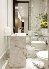 - Изборът на довършителни материали се влияе от размера на помещението.. Големите площи разширяват възможностите за дизайн, докато малките тоалетни изискват нюанс..