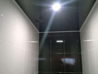 Има много възможности за довършване на тавана. Дизайнерите избират подходящ в зависимост от размера на стаята и финансовите възможности на собственика на апартамента. Най -често в тоалетната се правят гипсокартон или опънати тавани. По -рядко използвани пластмасови панели и венецианска мазилка.
