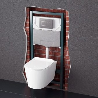 Рамковият тип инсталация има по-обмислен дизайн, но цената му е много по-висока.. Устройството се състои от стоманена рамка с антикорозионно покритие. Всички части на канализационния механизъм са здраво прикрепени към този „скелет“. Рамката на конструкцията има доста голям размер – нейната ширина е 50-65 см, височина – до 140 см, дълбочина – 20-35 см.